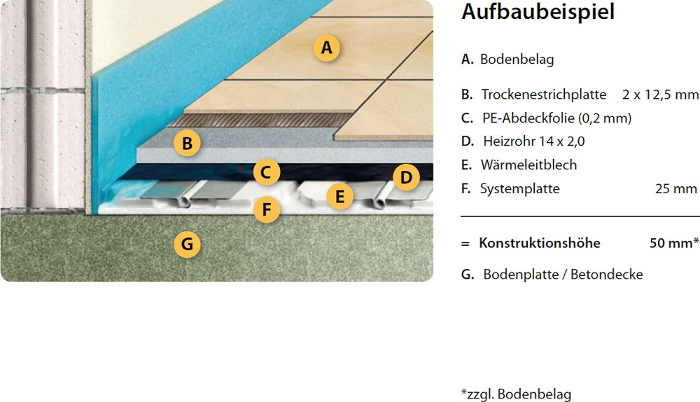 Konstruktionshöhe: 50 mm (zzgl. Oberbelag)